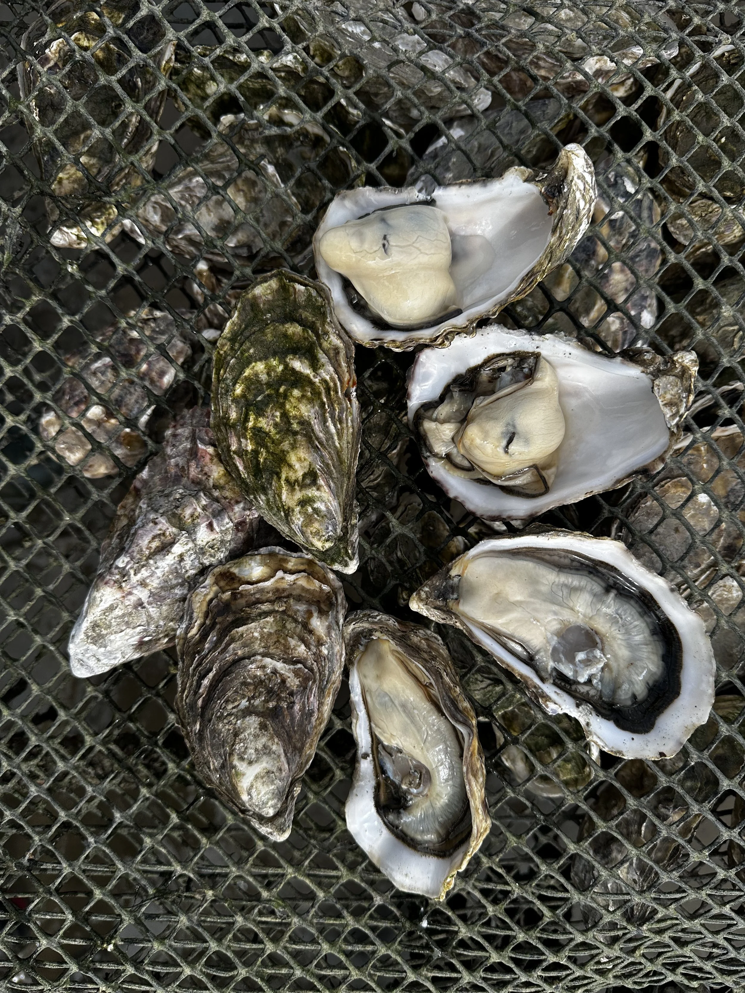 Throughout their growth, the oysters are carefully tended by hand—regularly shaken and repositioned to promote even development, strong shell formation, and optimal spacing. This hands-on approach ensures each oyster is grown under precise, controlled conditions while still benefiting from its natural environment.